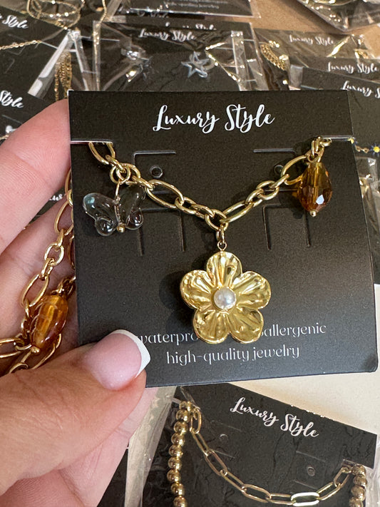 Kaklo papuošalas „Gėlė“, 18K auksu padengtas plienas.