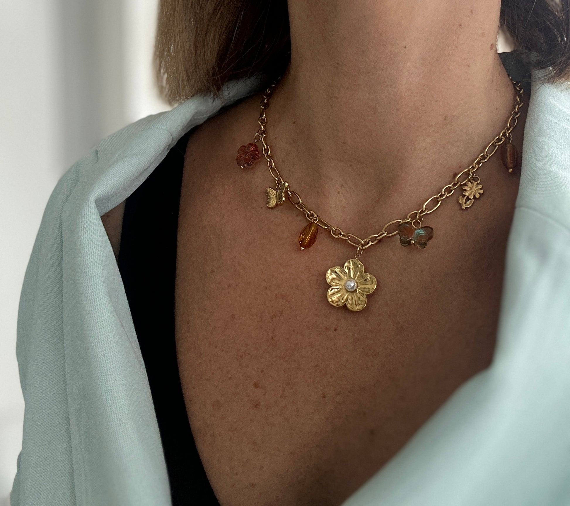 Kaklo papuošalas „Gėlė“, 18K auksu padengtas plienas.