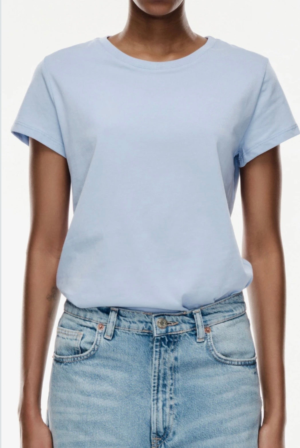 Apvalios iškirptės marškinėliai iš medvilninio audinio. Įprasto kirpimo.