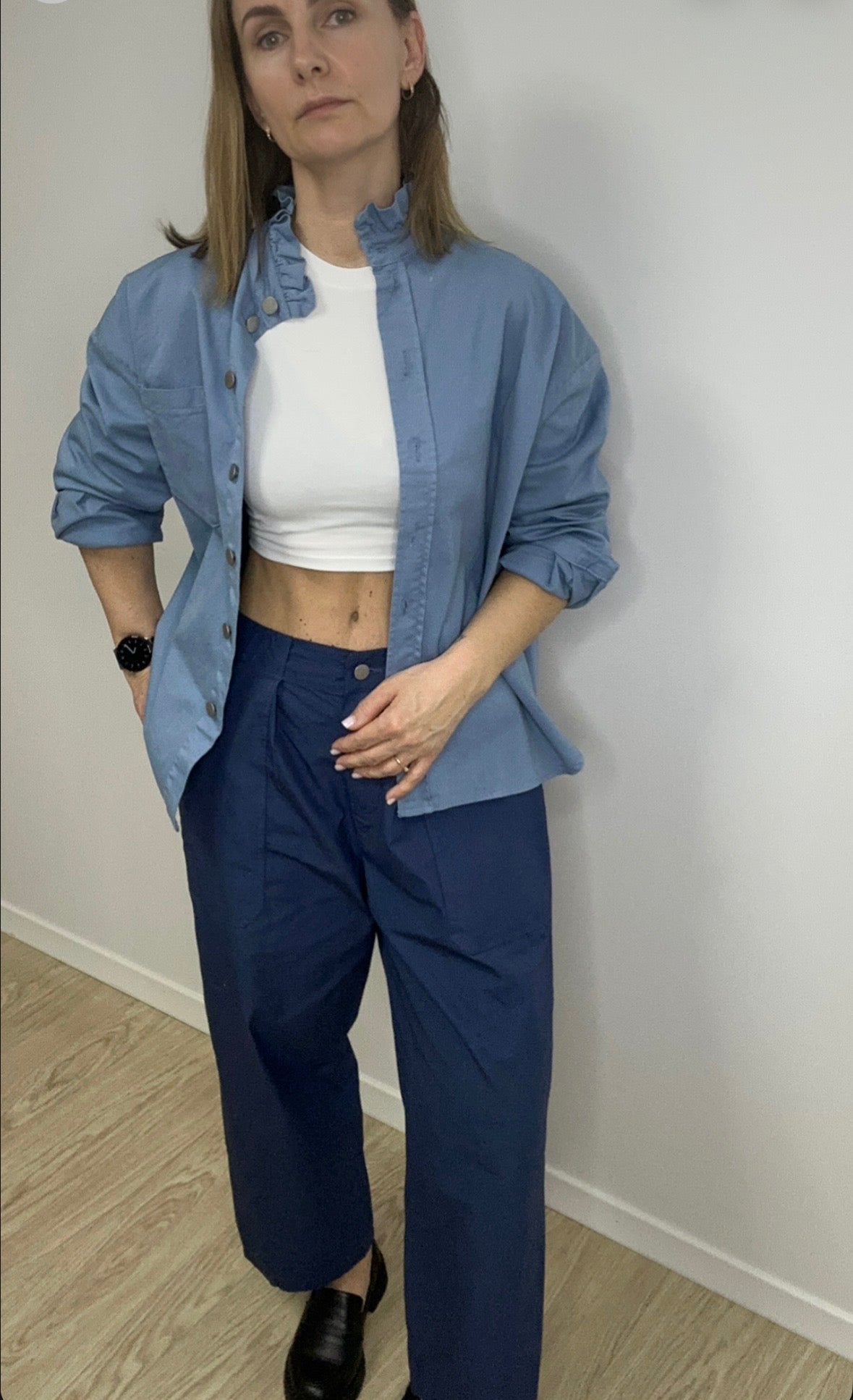 Tamprūs džinsiniai marškiniai iš 97 % medvilnės – puikus pasirinkimas pavasario sezonui. Itališkas rankų darbo gaminys iš moteriškos 2026 m. pavasario kolekcijos. Stilingi, patogūs ir lengvai derinami tiek prie kelnių, tiek prie sijono.