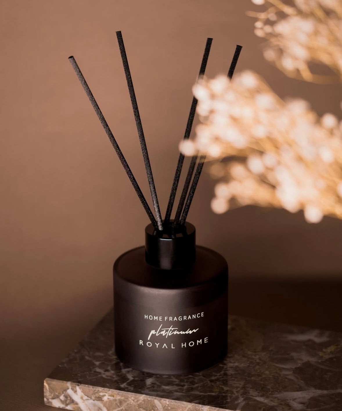 Matinis juodas buteliukas su minimalistiniu dizainu ir juodomis lazdelėmis atrodo prabangiai ir lengvai įsilieja į bet kokį interjerą – nuo modernios svetainės iki jaukaus miegamojo ar biuro.