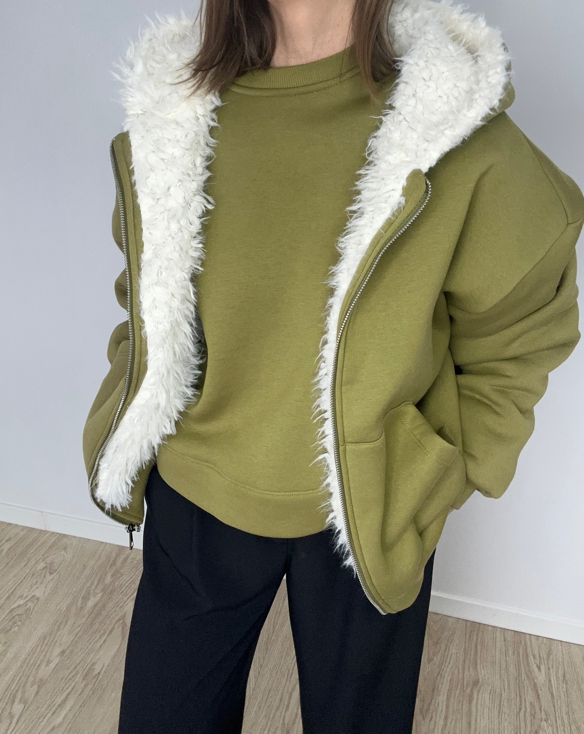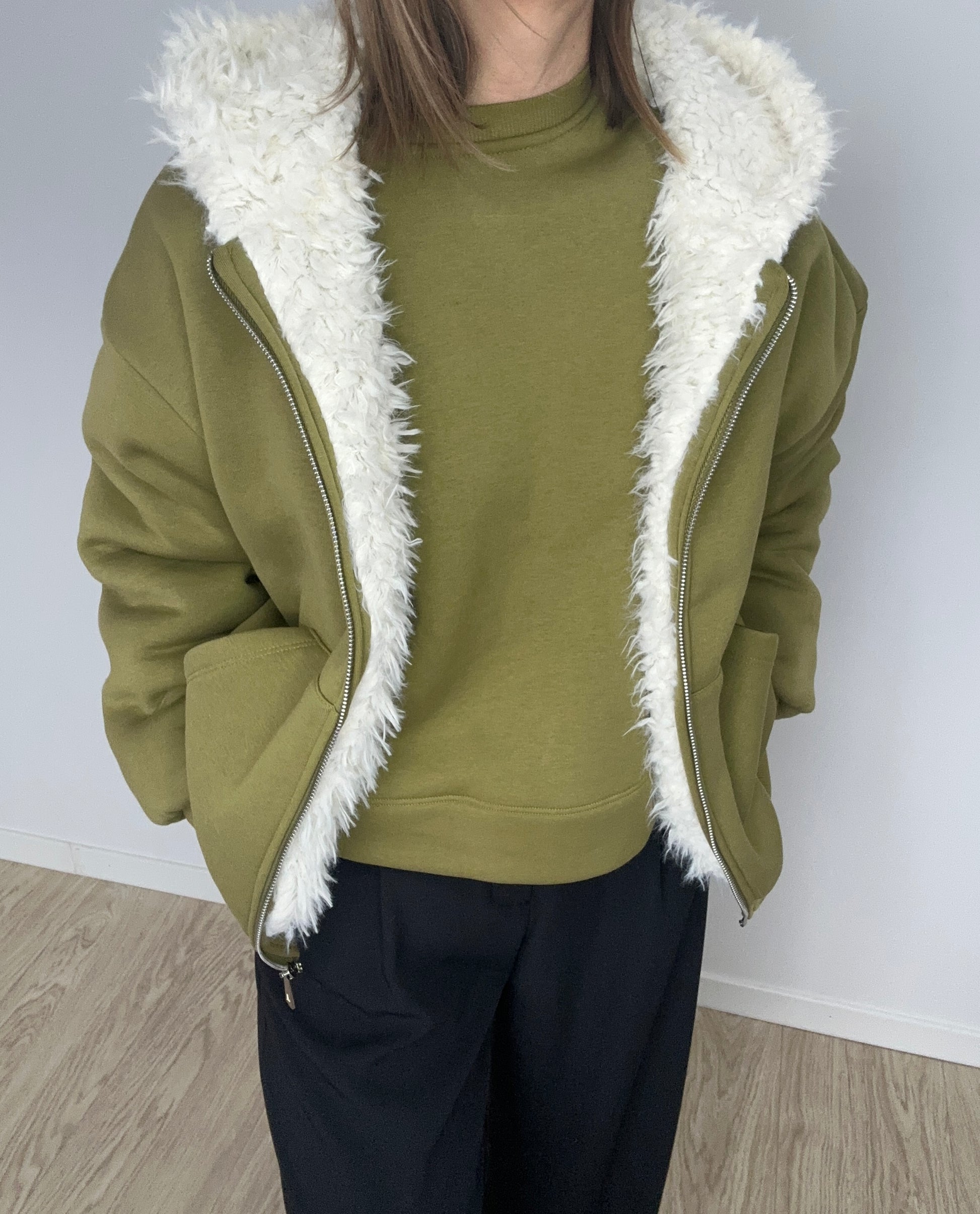 Onesize džemperis su kailiniu pamušalu – švelni šiluma ir stilius viename