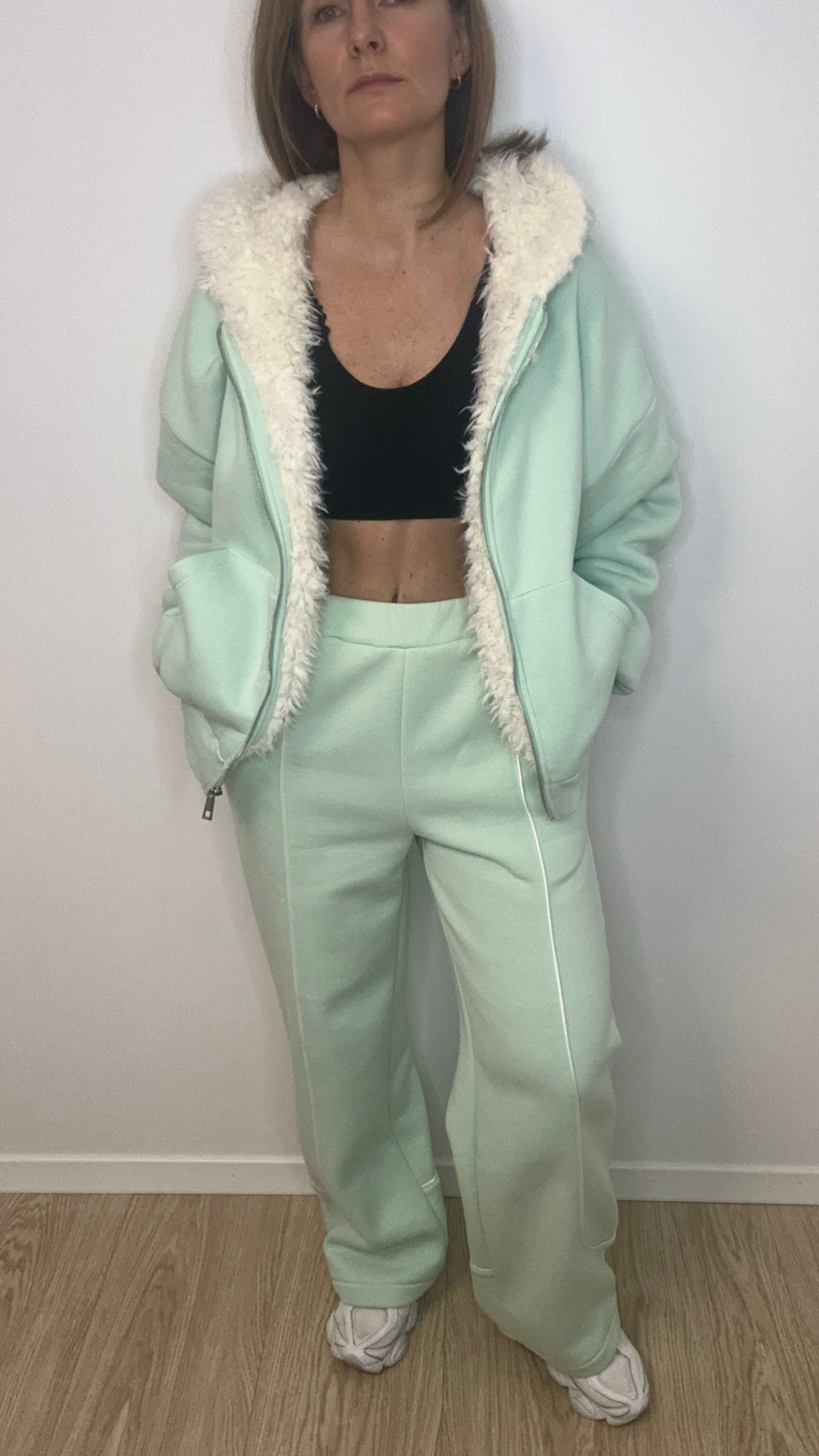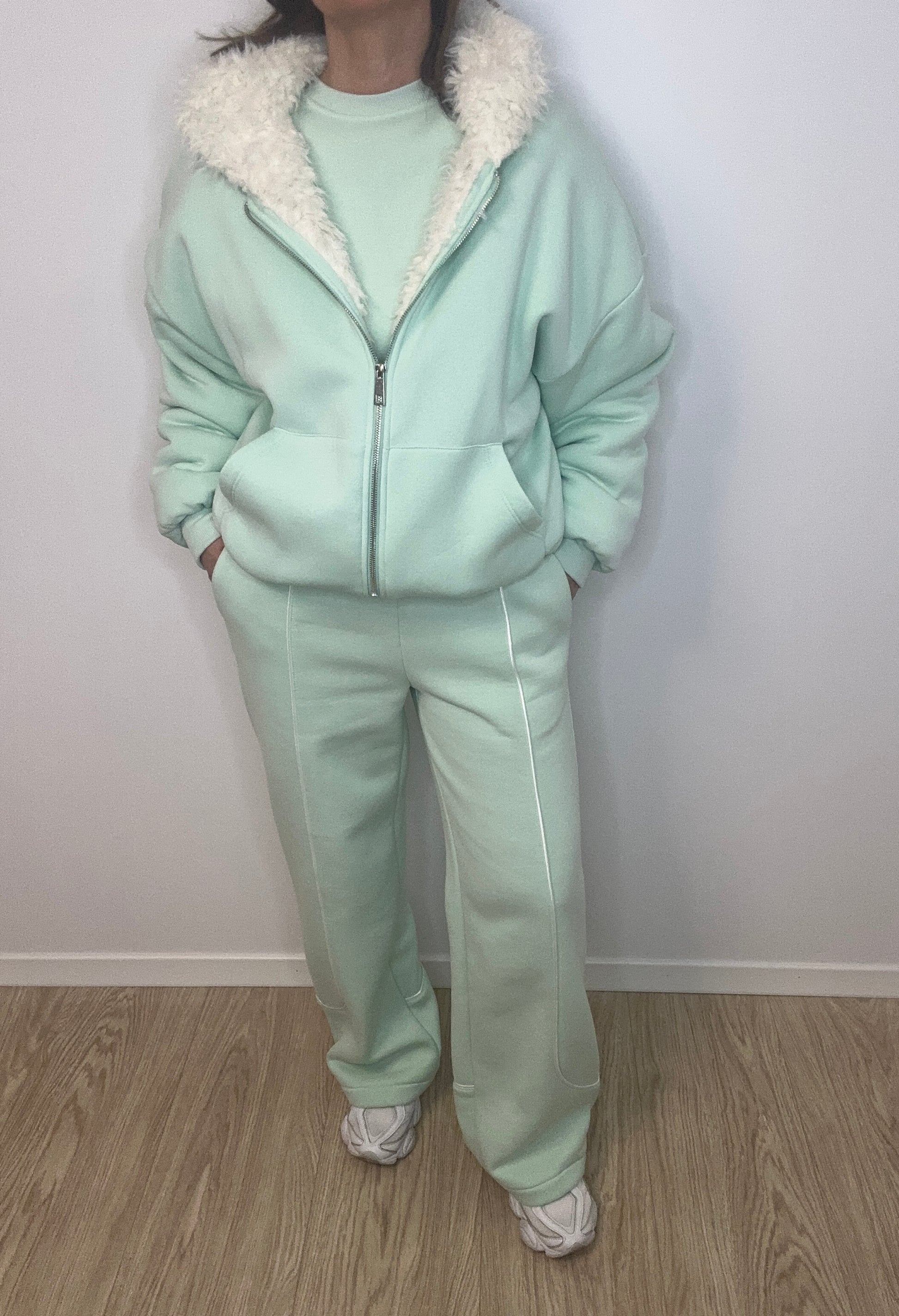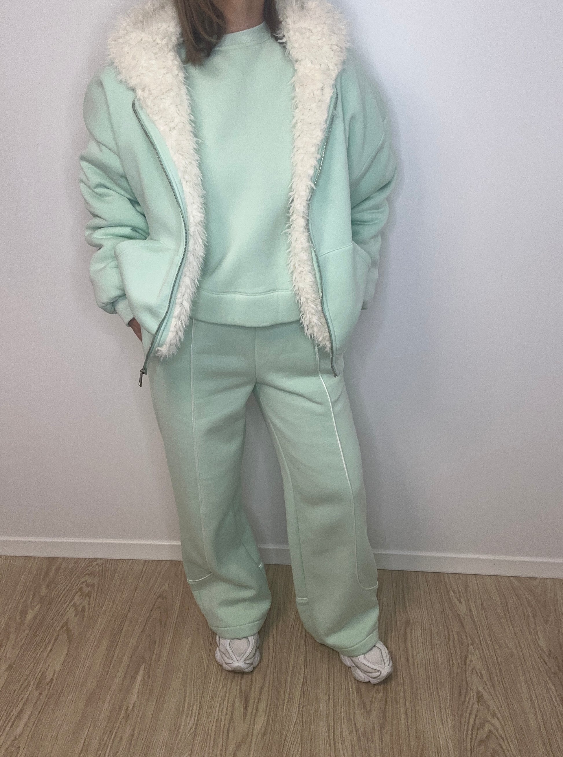 Jaukus, stilingas ir universalus – šis onesize džemperis puikiai tiks kasdieniam įvaizdžiui tiek namuose, tiek mieste. Švelnios pastelės spalvos modelis su užtrauktuku priekyje suteikia lengvumo pojūtį, o viduje esantis minkštas kailinis pamušalas užtikrina šilumą net vėsesnėmis dienomis.