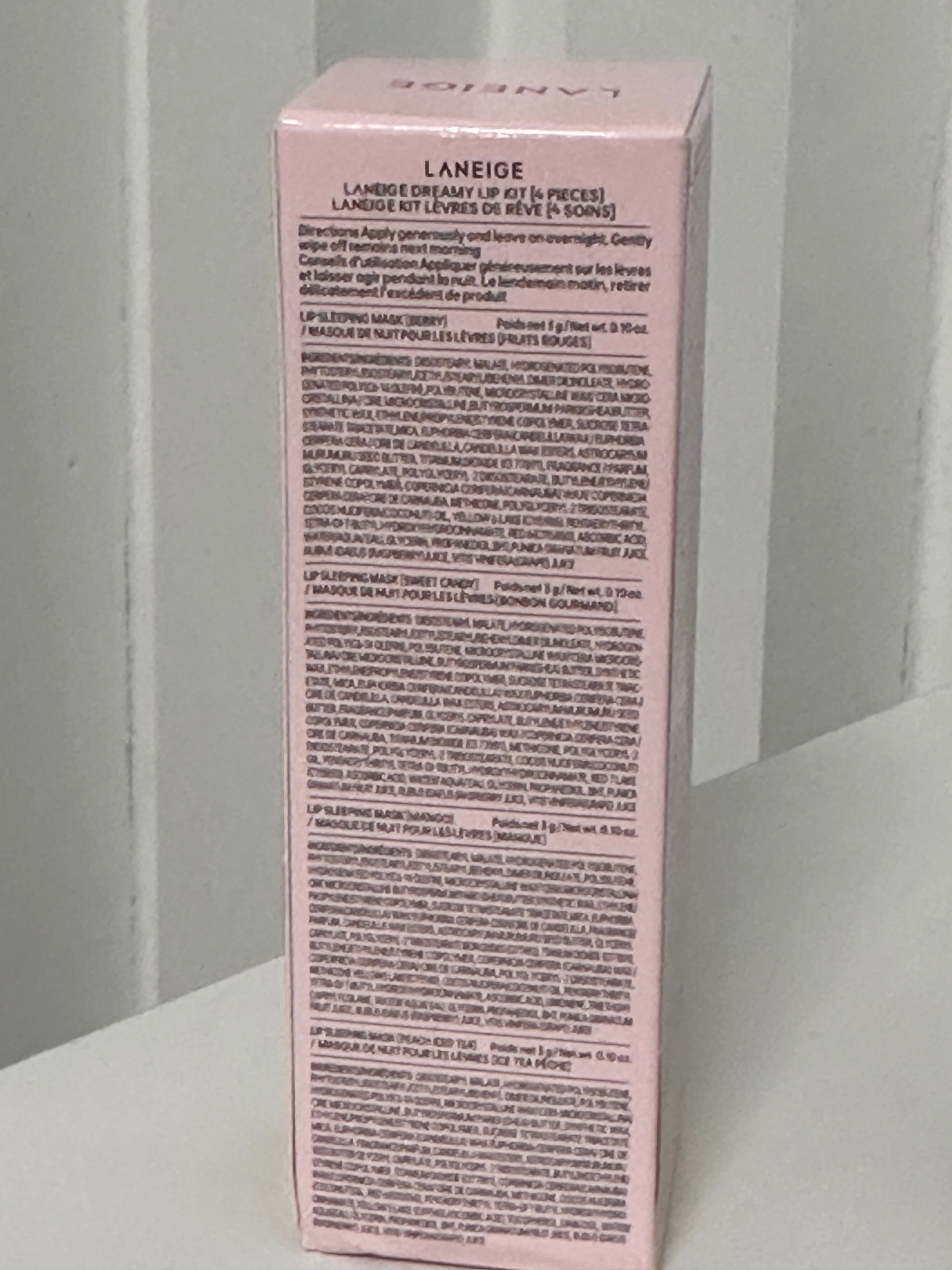 Šiame rinkinyje – keturios kultinės Laneige lūpų miego kaukės mini indeliuose. Tai tirštos, kremiškos tekstūros balzamai, kuriuos vakare tepame storesniu sluoksniu ir paliekame per naktį. Ryte lūpos būna minkštesnės, glotnesnės ir vizualiai pilnesnės.